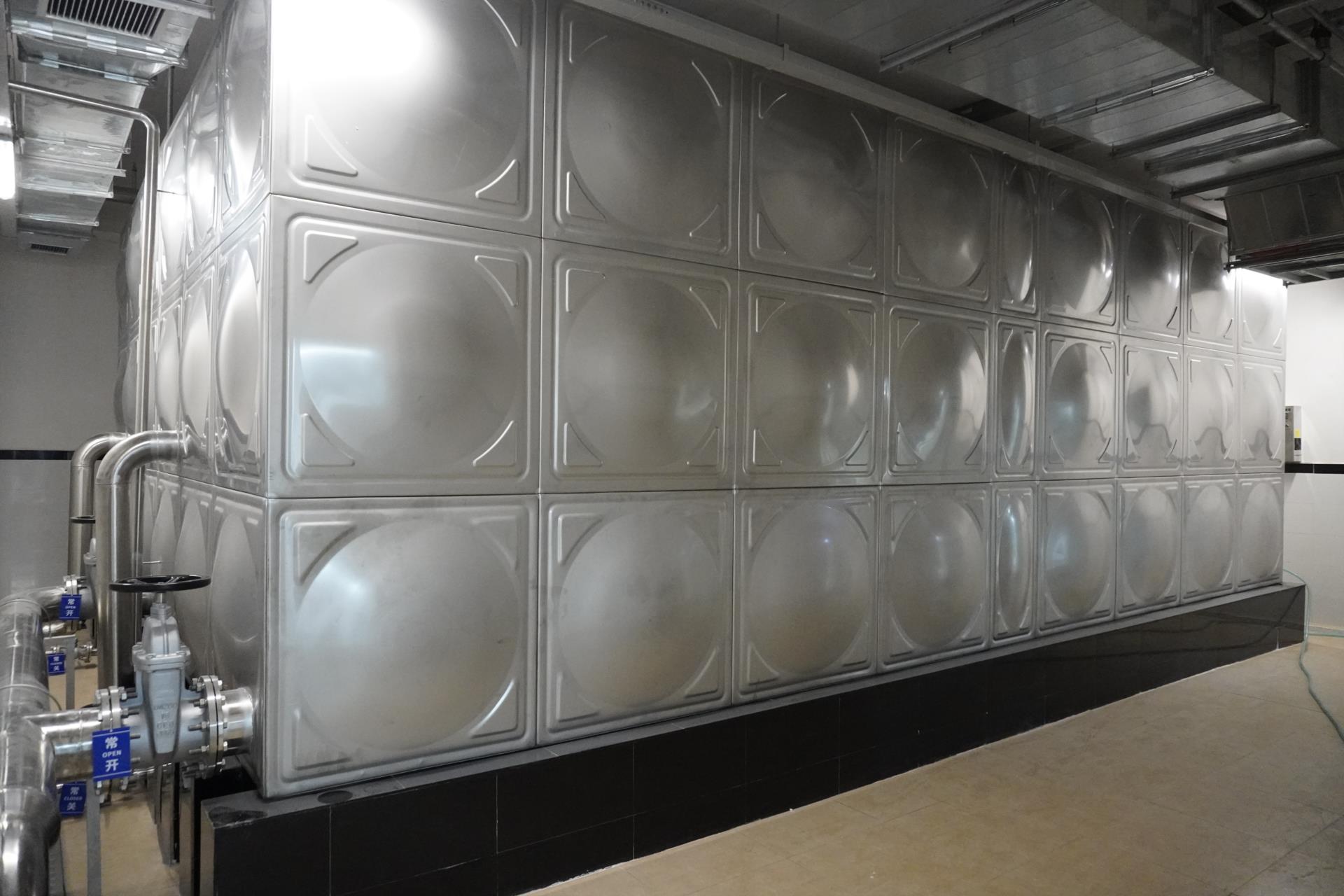 不銹鋼水箱多為方形組合式水箱。采用SUS304、SUS316L 、SUS444等不銹鋼板,沖壓成型。 一般沖壓成三種尺寸,分別是1x1米、1x0.5米和0.5x0.5米三種,周邊用鎢極氬弧焊接,具有強度高、重量輕、成本低、環保衛生等特點。制造標準為國家建筑標準12s101設計圖集。
